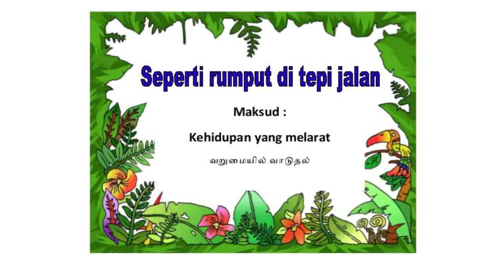 Seperti rumput di tepi jalan. C seperti rusa masuk kampung. Kehidupan yang melarat, tidak dipedulikan orang. F seperti harimau menyembunyikan kukunya. Dipedulikan oleh keluarga dan masyarakat. Bagai rumput di tepi jalan. Study with quizlet and memorize flashcards terms like bagai pinang dibelah dua, bagai acuan. Bagai telur di hujung tanduk kehidupan penagih dadah itu . Di mana bumi dipijak, di sana langit dijunjung · bagai melepaskan batuk di tangga · bulat kata · seperti api dalam sekam . Seperti rumput di tepi jalan.